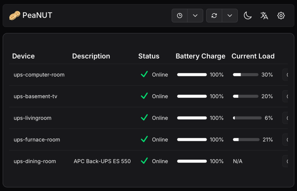 Once this is all done, I am then able to retrieve all of my UPS units’ status from anywhere on my network as long as I have the nut-client package installed and have access to the upsc command. We are now ready to install the PEANUT web interface using podman.