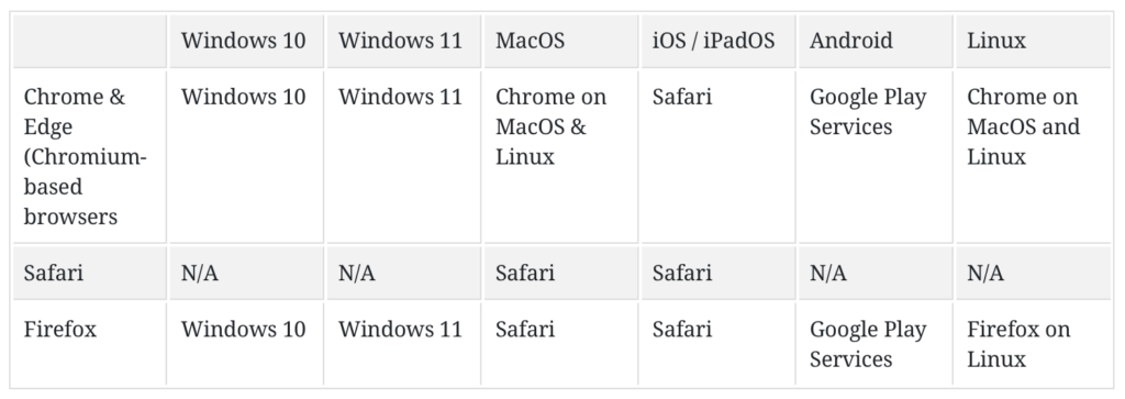 When my iPhone started to adopt the WebAuthn passkey solutions I wanted to make use of this convenient solution for my sites as well. As you can see from the chart below, the adoption across the different platforms and devices are now universal.